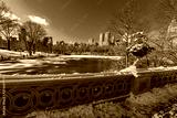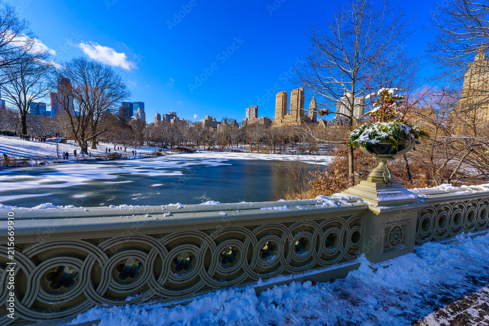 Bow bridge in the winter at sunny day, Central Park, Manhattan, New York City, USA