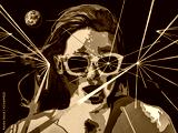 Oil on canvas modern conceptual art portrait painting of a beautiful young woman with an infrared look.