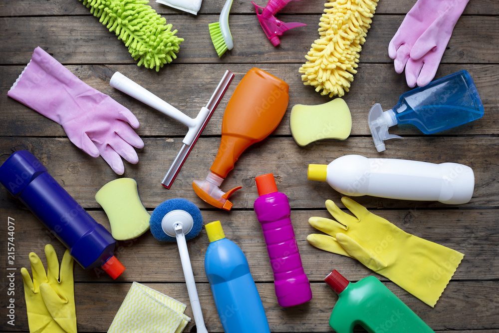 House cleaning product on wood table