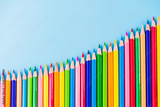 Education or back to school Concept. Close up macro shot of color pencil pile pencil nibs on blue background.