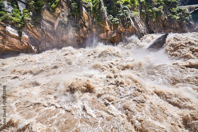 Turbulent muddy mountain river, Tiger Leaping Gorge, China.