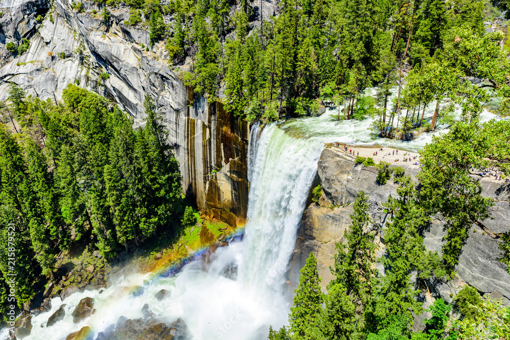 Vernal Falls and Merced River, Hiking at Nevada Falls along John Muir Trail and Mist Trail, Yosemite National Park, California, USA