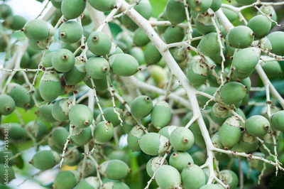 Close up Manila palm raw seed on tree, Veitchia merrillii (Becc.) H.E. Moore