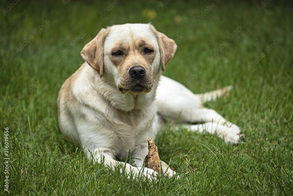 Young labrador dog in the garden
