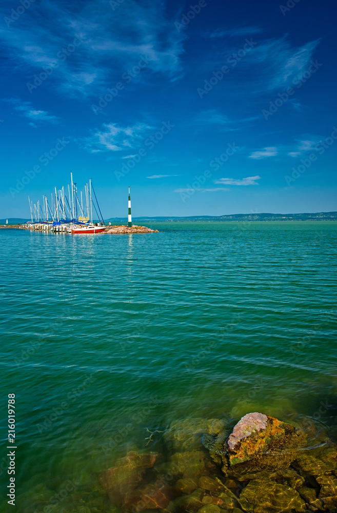 Sailboats in the port at lake Balaton, Hungary in summer