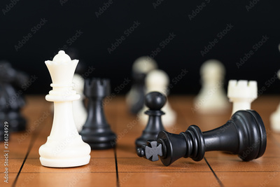 Chess pieces on wood chessboard