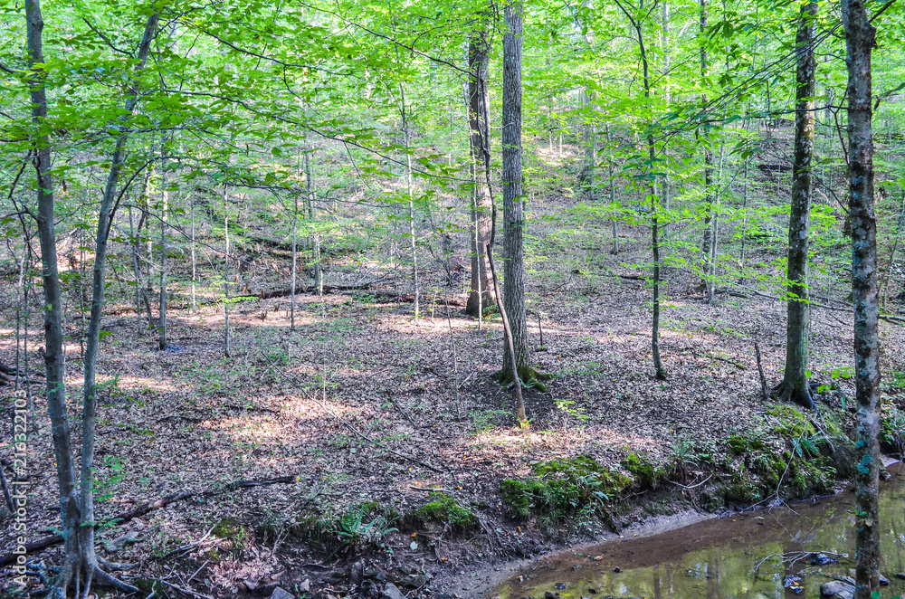 Forest with river during summer in Shenandoah valley blue ridge appalchian mountains on hike