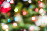 Background of green and red Christmas ornament bokeh