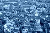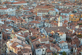 Elevated view of Venice roofs before sunset in summer, Italy