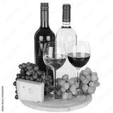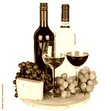 Wine cheese red grapes square isolated on white