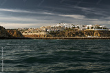 Miasteczko na klifach, Algarve, Portugalia, widok z wody.