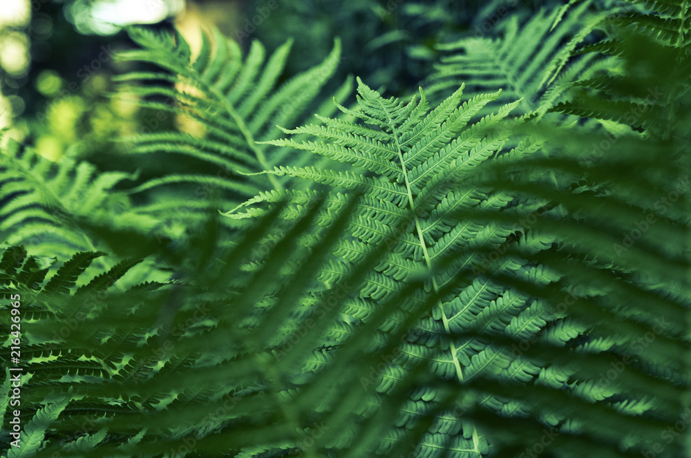 Liście paproci, ujęcie makro.