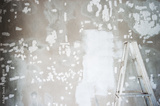 white repairing for painting with dirty ladder the decoration cement wall construction background