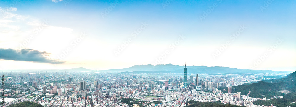 Skyline of taipei city in downtown Taipei, Taiwan.
