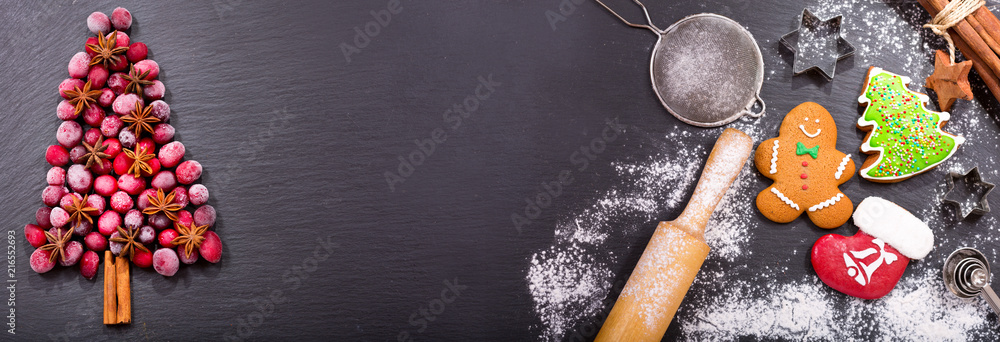 Christmas food. Ingredients for cooking Christmas baking, top view