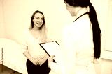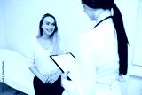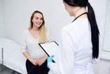 young pretty pregnant woman in a clinic at a female consultation with a gynecologist-obstetrician doctor