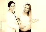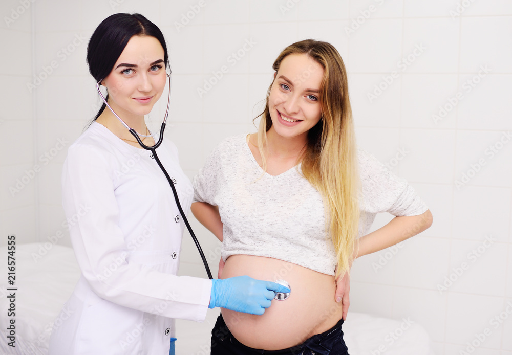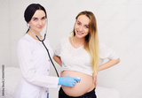 young pretty pregnant woman in a clinic at a female consultation with a gynecologist-obstetrician doctor