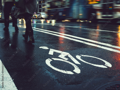 Bicycle Lane People walking Street Traffic Sign City Transportation on Raining day