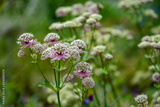Great masterwort flowers,. Astrantia major, blooming in a garden