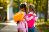 Adorable little schoolgirl feeling extremely excited about going back to school