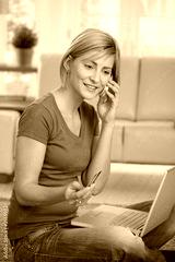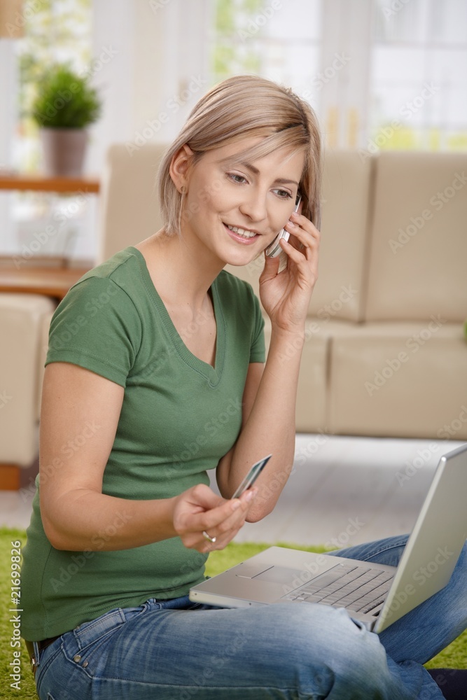 Woman paying bills from home