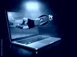 Caucasian soccer Players in dynamic action with ball