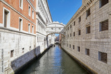 Bridge of Sighs and calm water in the canal, nobody in Venice, Italy