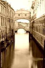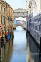 Bridge of Sighs and calm water in the canal, morning in Venice, Italy