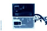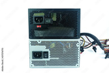 Close up Switch and cable plug of 2 Power supplys with cables unit for computer pc part isolated on white background