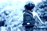 Back to school. Cute asian child girl with backpack running and going to school with fun
