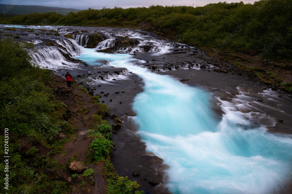 Bruarfoss waterfall. The Blue waterfall in Iceland.