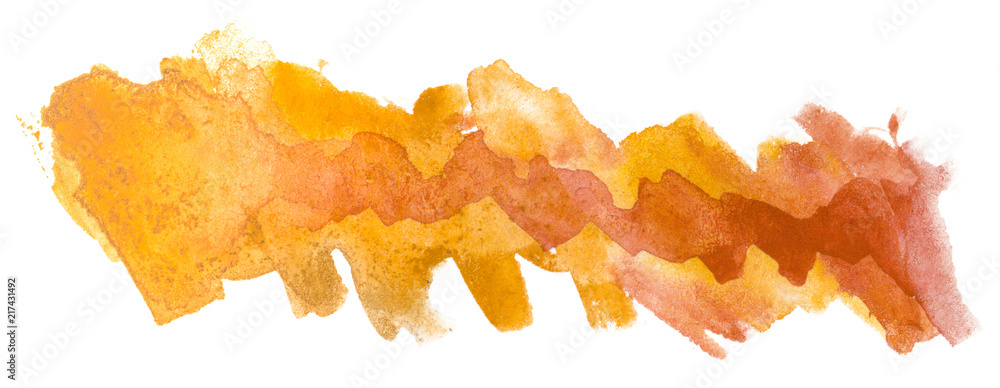 Orange yellow watercolor stain on white background isolated. for use in design, printing and web design.