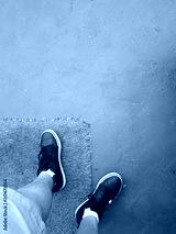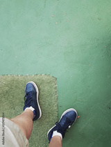 Feet seen from above on a sports track with artificial grass