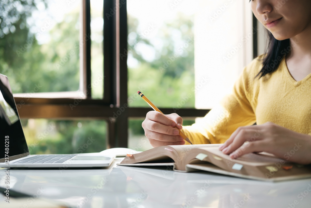 Woman reading a book. Education, Academic, Learning Reading and Exam concept.