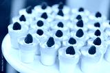 Raspberry mousse in jars. Dessert for holiday.