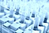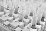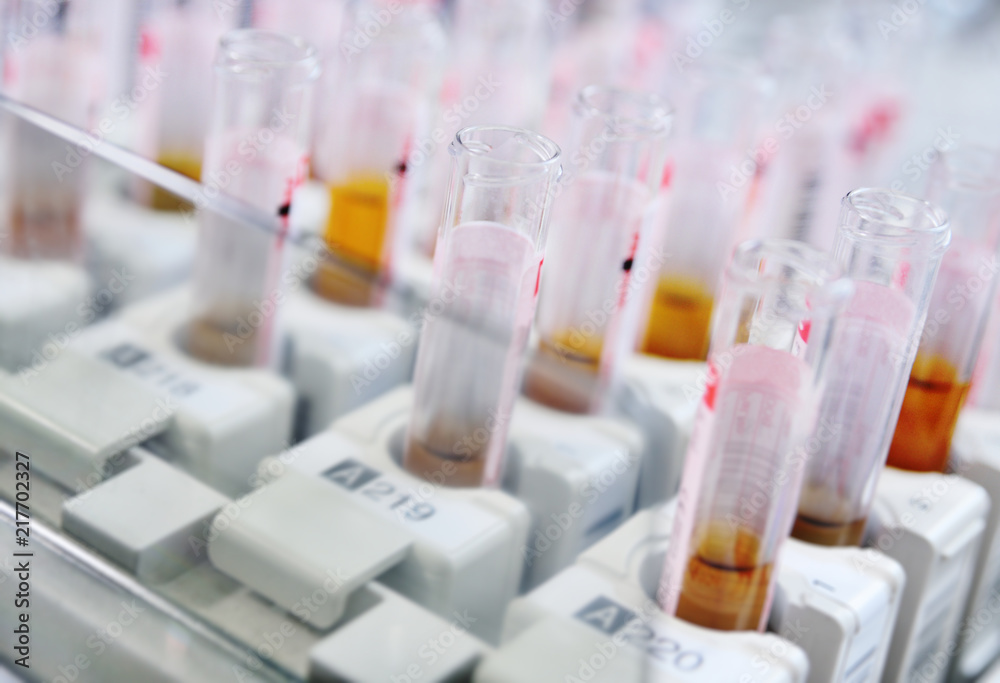 medical test tubes with blood tests on a laboratory background