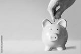Hand putting coin to piggy bank
