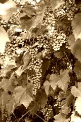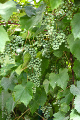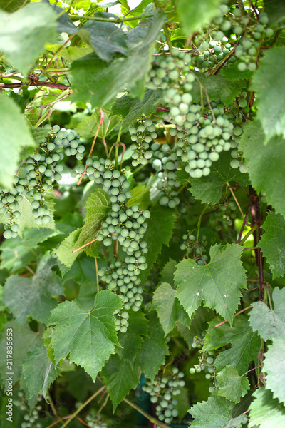 The grapes grow in the garden on the vine. Unripe green groats of a rich harvest.