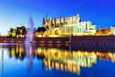 Kathedrale Catedral de Palma de Mallorca Kirche Spiegelung Abend Reise Reisen Spanien