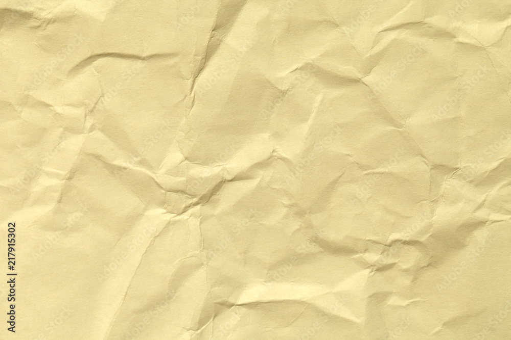 Paper beige color is crumpled and aged. Background light brown in retro style, strongly crumple.