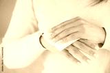 Woman cleaning her hands with a tissue. Healthcare and medical concept.