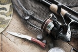 feeder fishing rod. fishing reel isolated. carp fishing tackle.