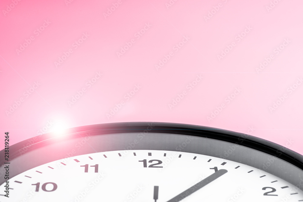 A pink wall clock on pink background Theme of Working business The concept of The time Copy space