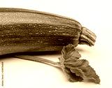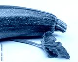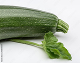 Green zucchini with leaves in studio.