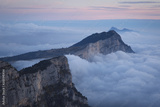A sea of clouds in the mountains at dawn. Vercors, France.