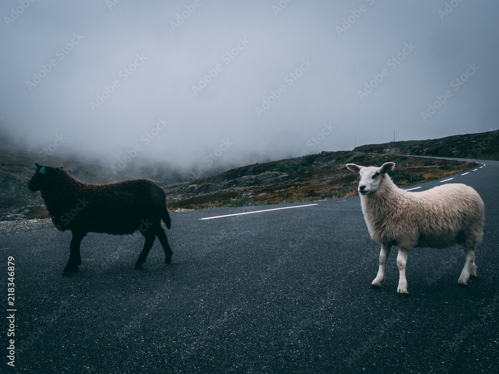 one black sheep and one white sheep