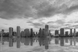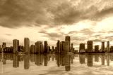 Dynamic Miami skyline, business and office skyscrapers at against beautiful sunset