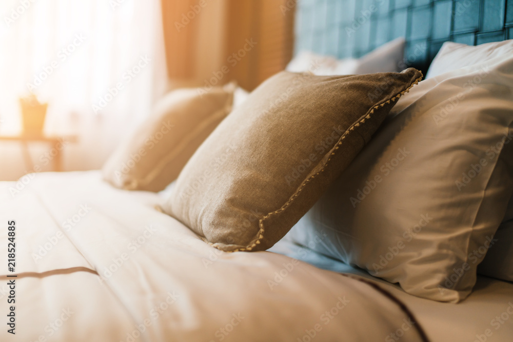 house beautiful design concept with soft cozy pillow on bed in bedroom