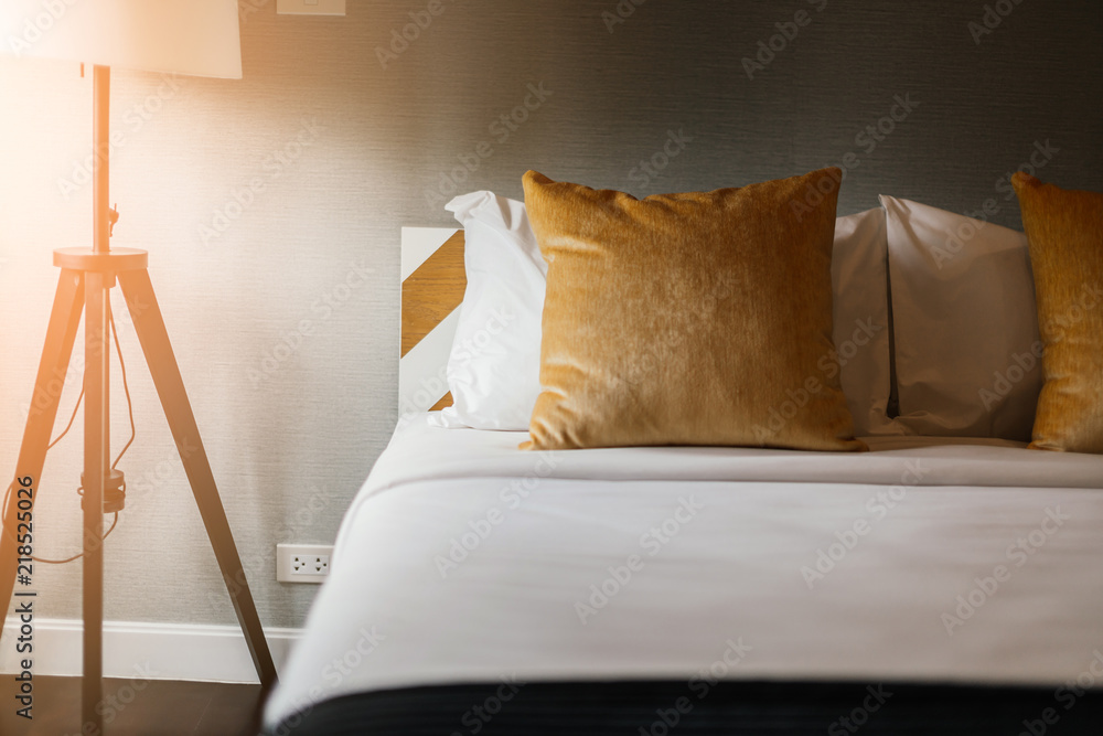 house beautiful design concept with soft cozy pillow on bed in bedroom