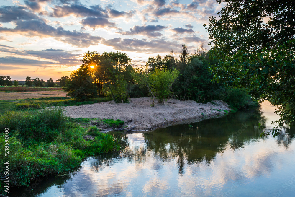 Krajobraz letni nad dziką rzeką